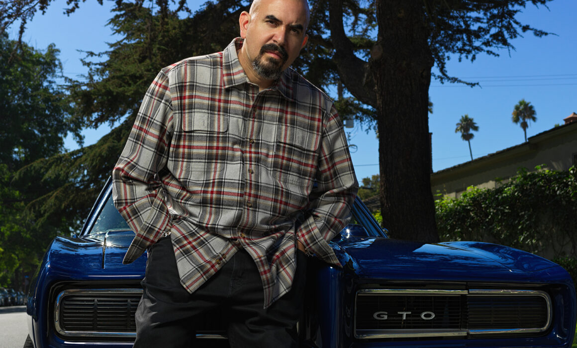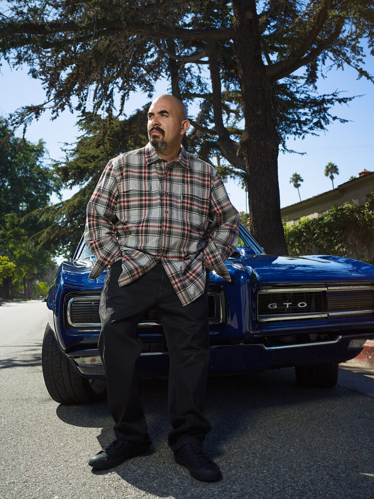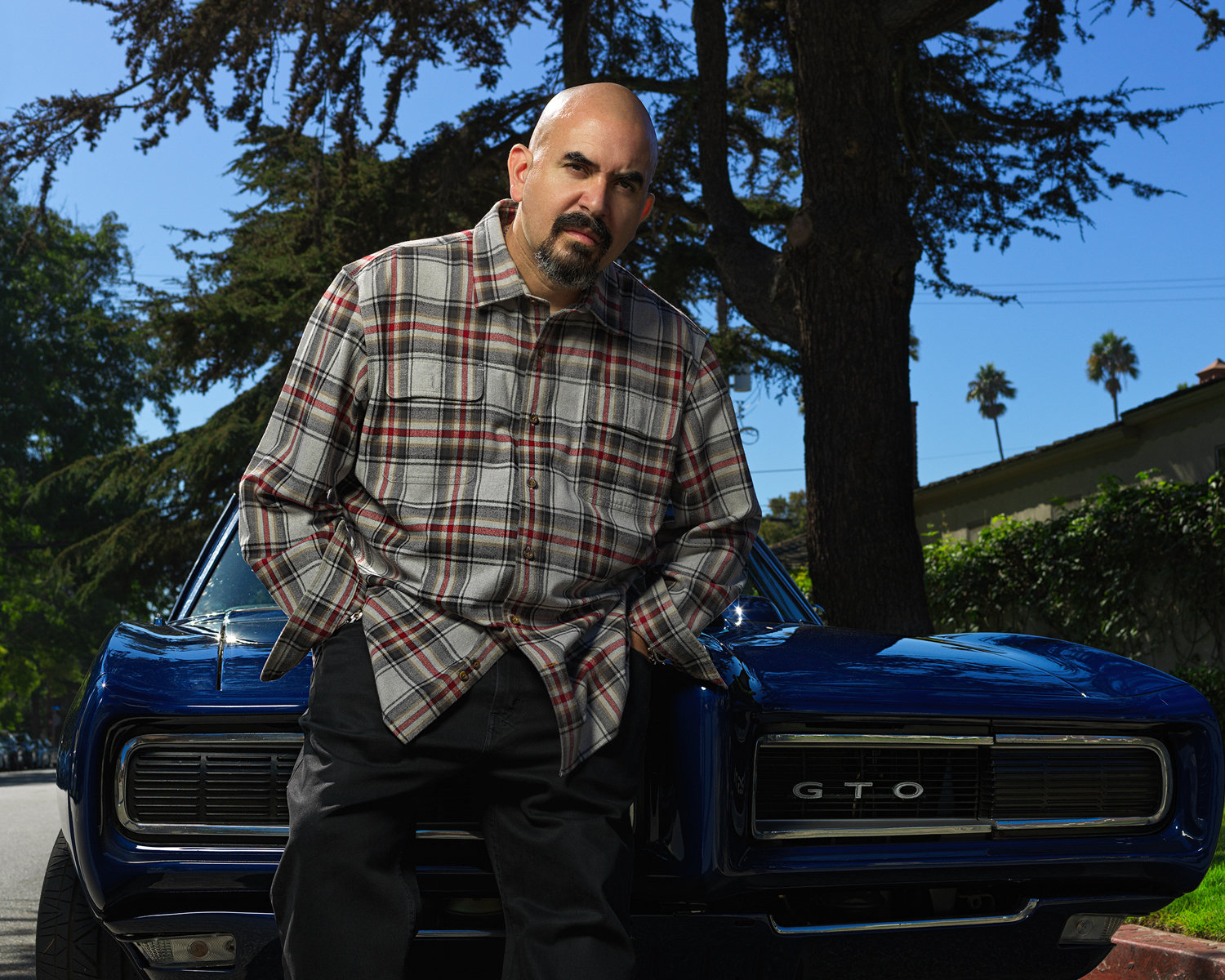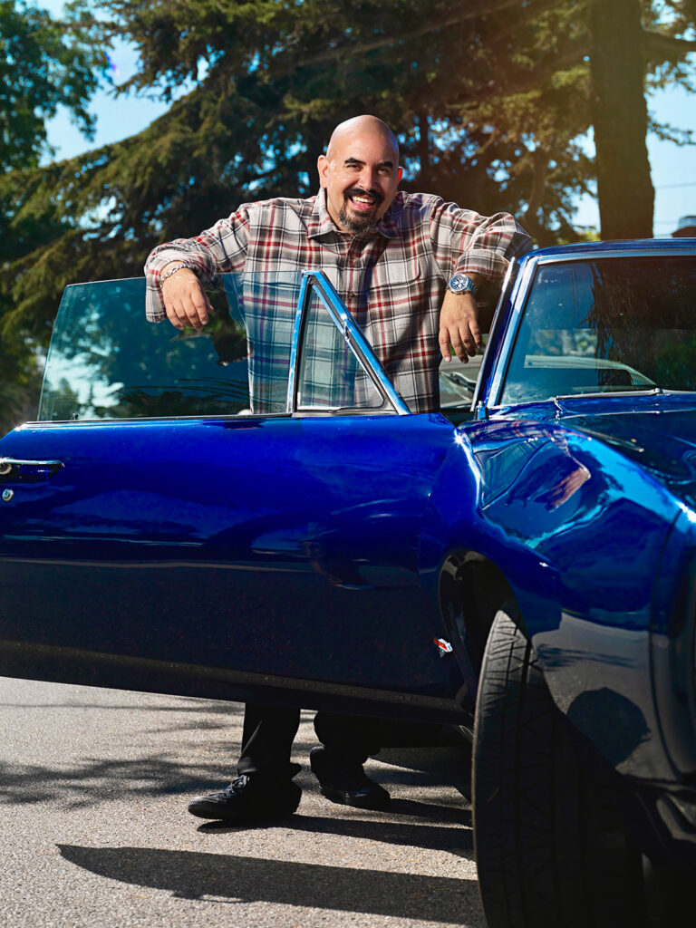This is where we had fun with Noel. Being that he is known for “Fast & Furious” cars, it only made sense to have him next to an iconic car, like the cobalt blue GTO we used.