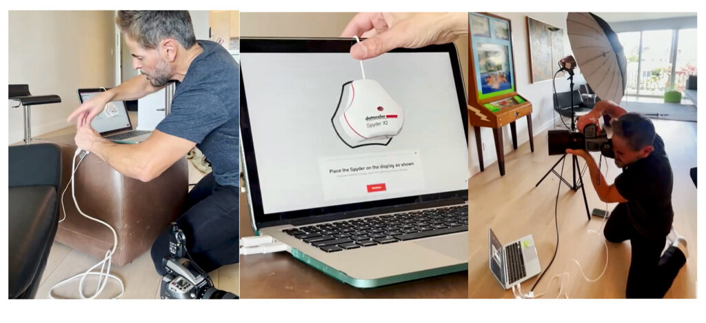 If you are not doing this yet, you should highly consider shooting to computer or laptop. It at least gets you to an accurate starting point, and you can quickly unplug if it becomes cumbersome for you or your client. Most of my work is for commercial purposes, whether editorial print, branding media or poster usage, so for this reason I like to review the highlights, shadows, and color accuracy in real time. To be certain that what you are seeing is what you will produce later, you need to first start with a properly calibrated monitor. I start every photo shoot, whether in studio or on location by calibrating my monitor with the Spyder X2 Elite. This process is quick, under two minutes, and extremely valuable. To highlight a few features, the scientifically engineered software will run a series of tests, checking your color gamut, monitor brightness and black and white points. I rely on this, as most of my work is used for print, and I can confidently review that the latitude between my shadows and highlights is accurate.